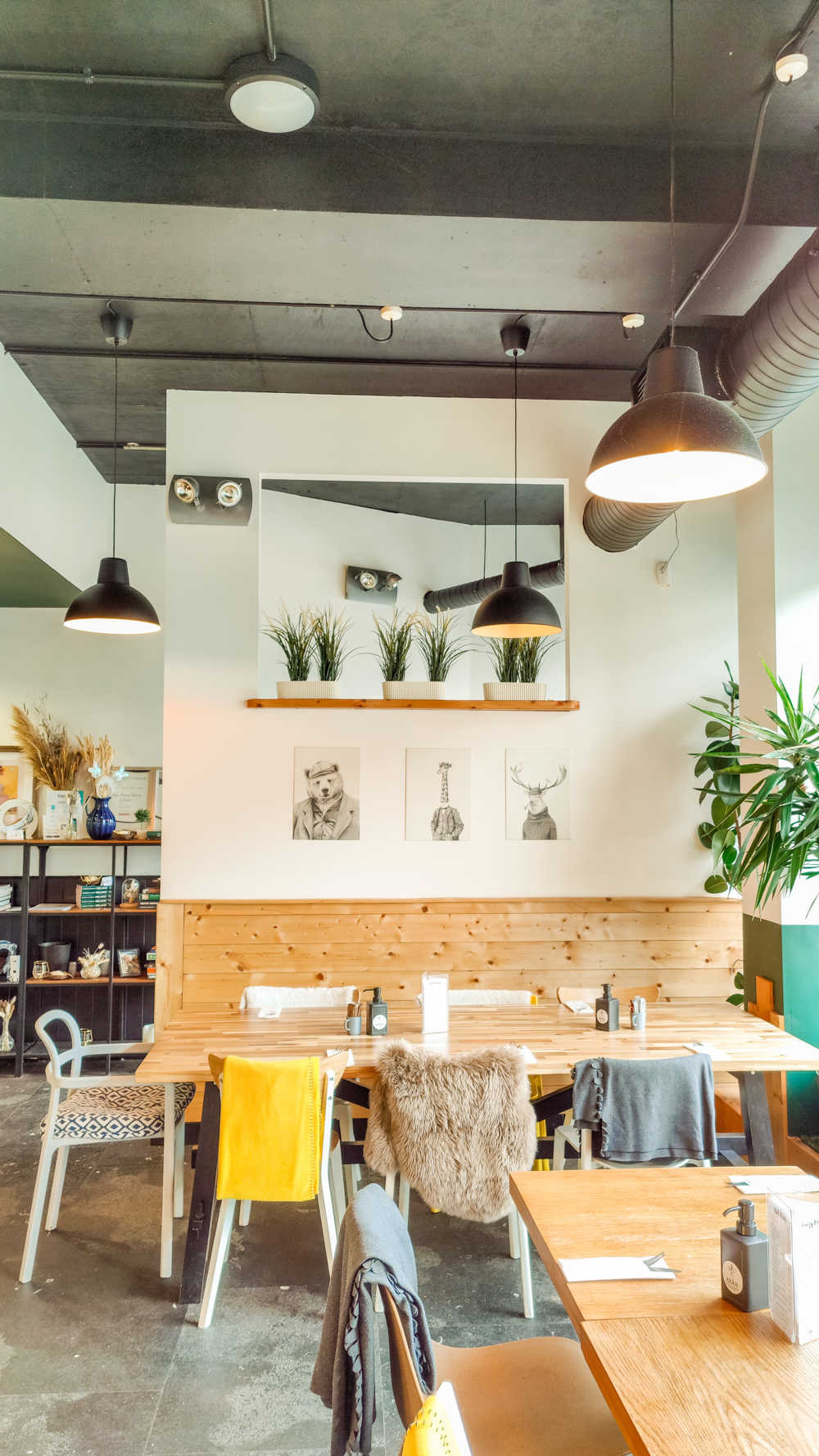 The menu changes by season, and they use local and homemade products. All the brunch options sounded tasty, but you know me, I went for the avo toast as always. I must tell you, it was one of the best avocado toasts of my life. And I had a few… The avo cream was spread on sourdough bread (baked in their neighbour store) and was topped with fried egg, tomato and garlic confit and the tastiest goat cheese I’ve ever eaten. Furthermore, the composition with the veggies on the side was beautiful. All the dishes served in the café were amazingly mouthwatering. Of course, the coffees were also tasty.